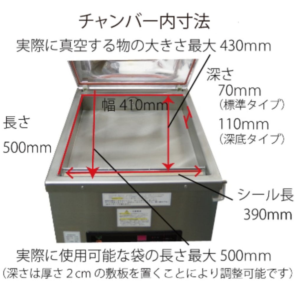 チャンバー内寸法:W410×D500×H70+60(計130)㎜(AZ-390J)
