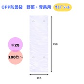 OPP防曇袋 野菜・青果用(業務用) 【120×750mm】厚み0.025mm 4穴・プラ付 サイドシール 100枚/袋
