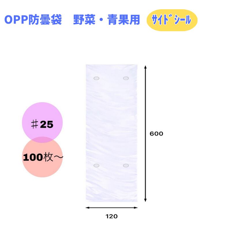 OPP防曇袋 野菜・青果用(業務用) 【120×600mm】厚み0.025mm 4穴・プラ付 サイドシール 100枚/袋