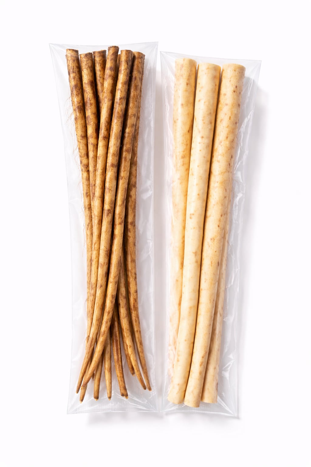 長ネギ・青ネギ・小ネギ・ごぼう・長芋などの包装サイズとしてよく使用される規格で、商品を清潔に見せながら販売できます。透明度の高いOPP素材を使用しているため、中身がはっきり見え、商品価値を高めます。