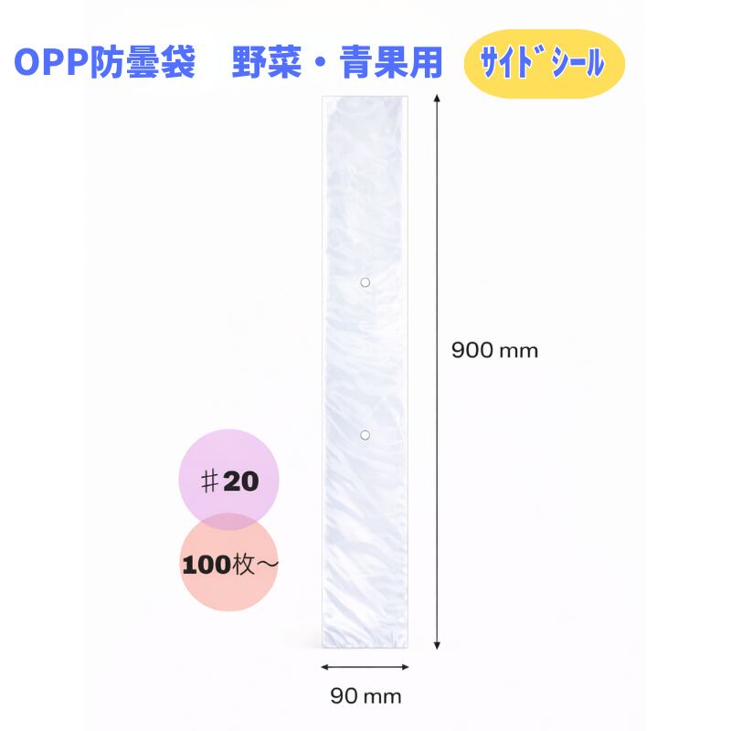 OPP防曇袋 野菜・青果用(業務用) 【90×900mm】厚み0.02mm 2穴・プラ付 サイドシール 100枚/袋
