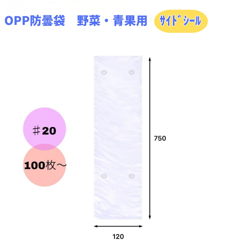 OPP防曇袋 野菜・青果用(業務用) 【120×750mm】厚み0.02mm 4穴・プラ付 サイドシール 100枚/袋