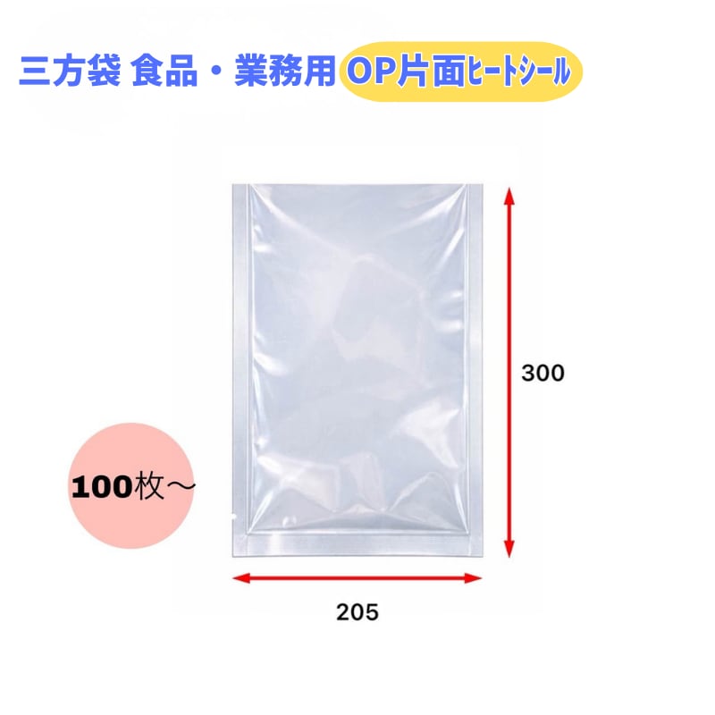 OPP三方袋 ヒートシール対応 透明 食品用 業務用 お菓子袋 【205×300mm】 厚み0.05mm 100枚入り