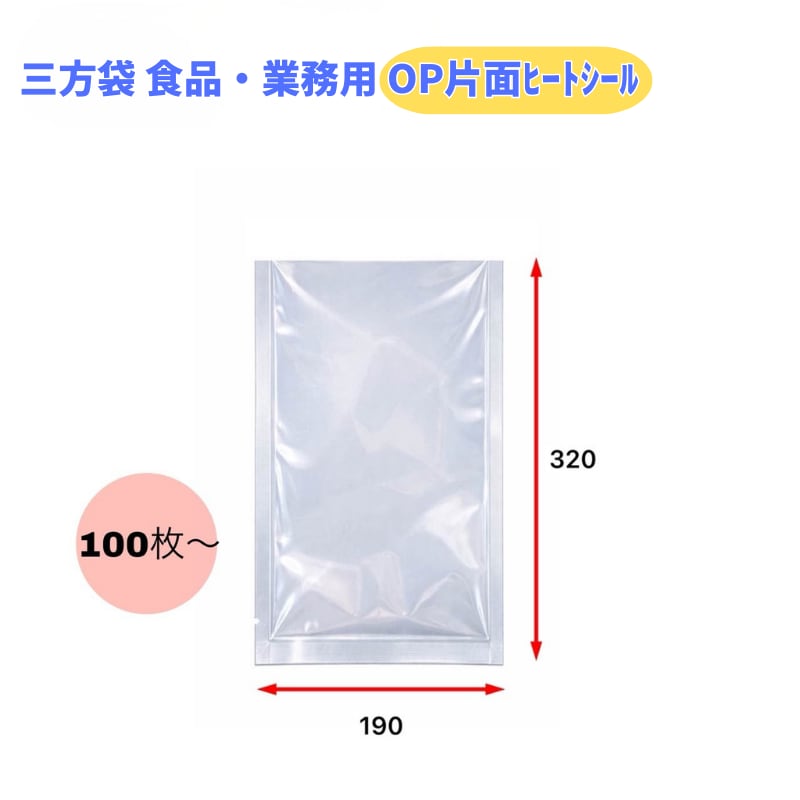 OPP三方袋 ヒートシール対応 透明 食品用 業務用 お菓子袋 【190×320mm】 厚み0.05mm 100枚入り